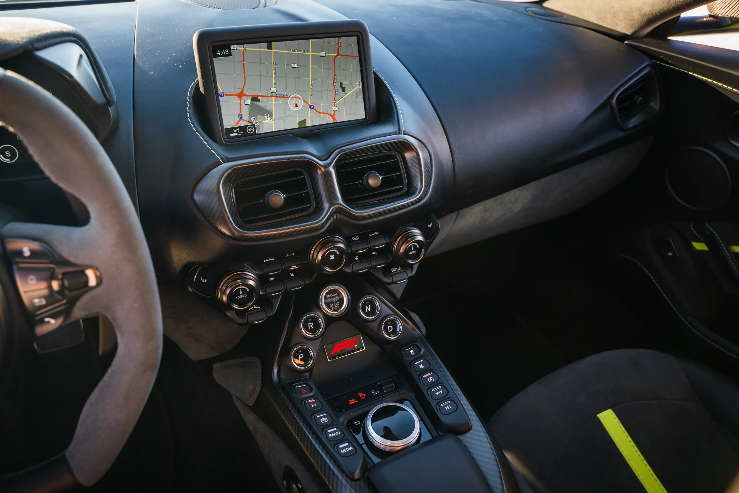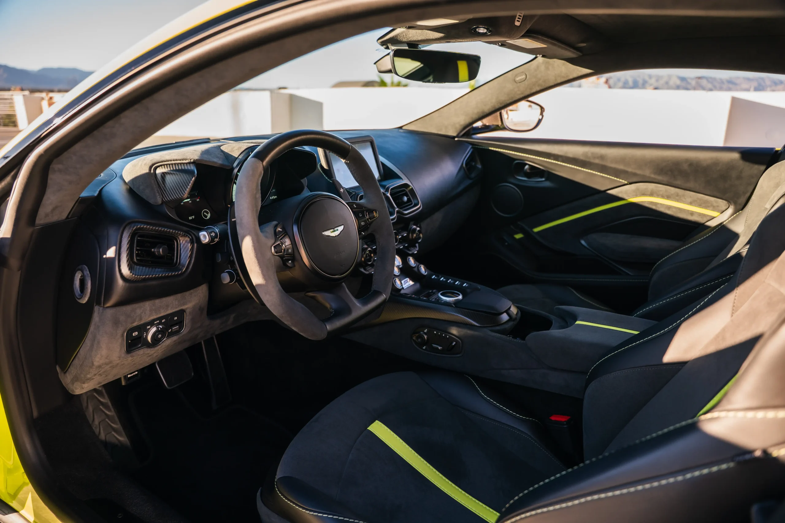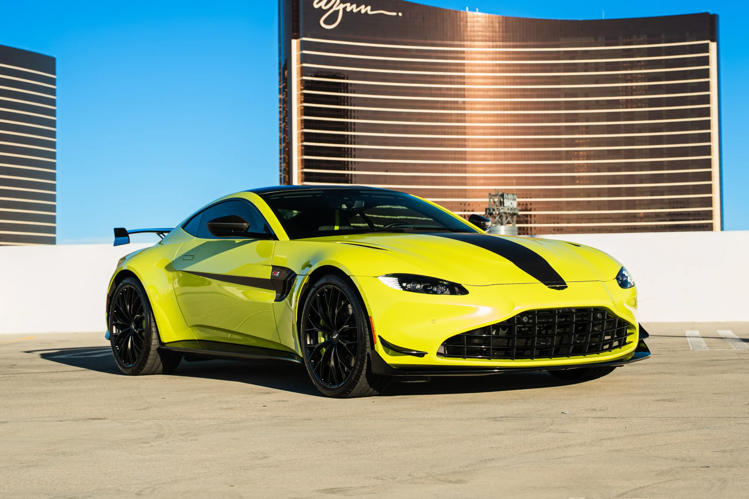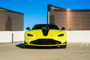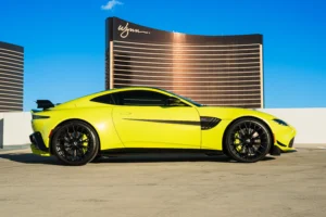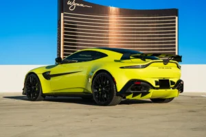 The Aston Martin Vantage is a high-performance sports car that blends British craftsmanship with modern engineering. Powered by a twin-turbocharged V8 engine, it delivers thrilling acceleration and precise handling, complemented by a perfectly balanced rear-wheel-drive setup. The Vantage features a sleek, aggressive design with signature Aston Martin styling—low stance, wide grille, and sculpted lines. Inside, it offers a luxurious driver-focused cockpit with premium materials, intuitive controls, and advanced technology. Combining power, elegance, and unmistakable presence, the Vantage embodies the pure essence of a modern Aston Martin.